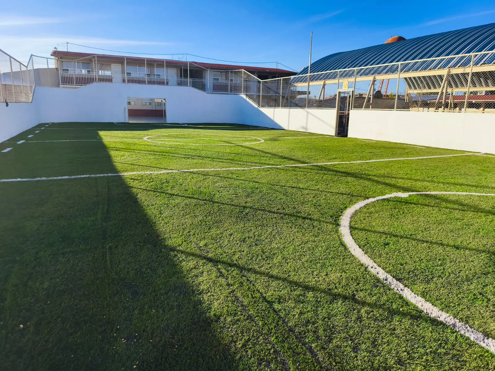 En esta cancha se instaló pasto híbrido D1ES Sports de 35 mm / 800 gramos. Este es el producto recomendado para este tipo de canchas por su resistencia y durabilidad al momento del juego o competencias.